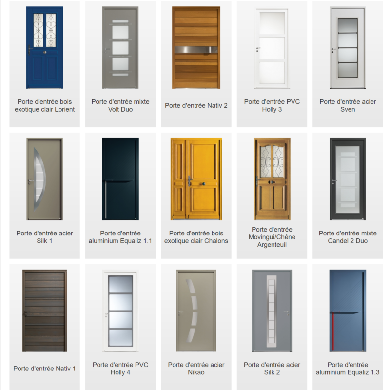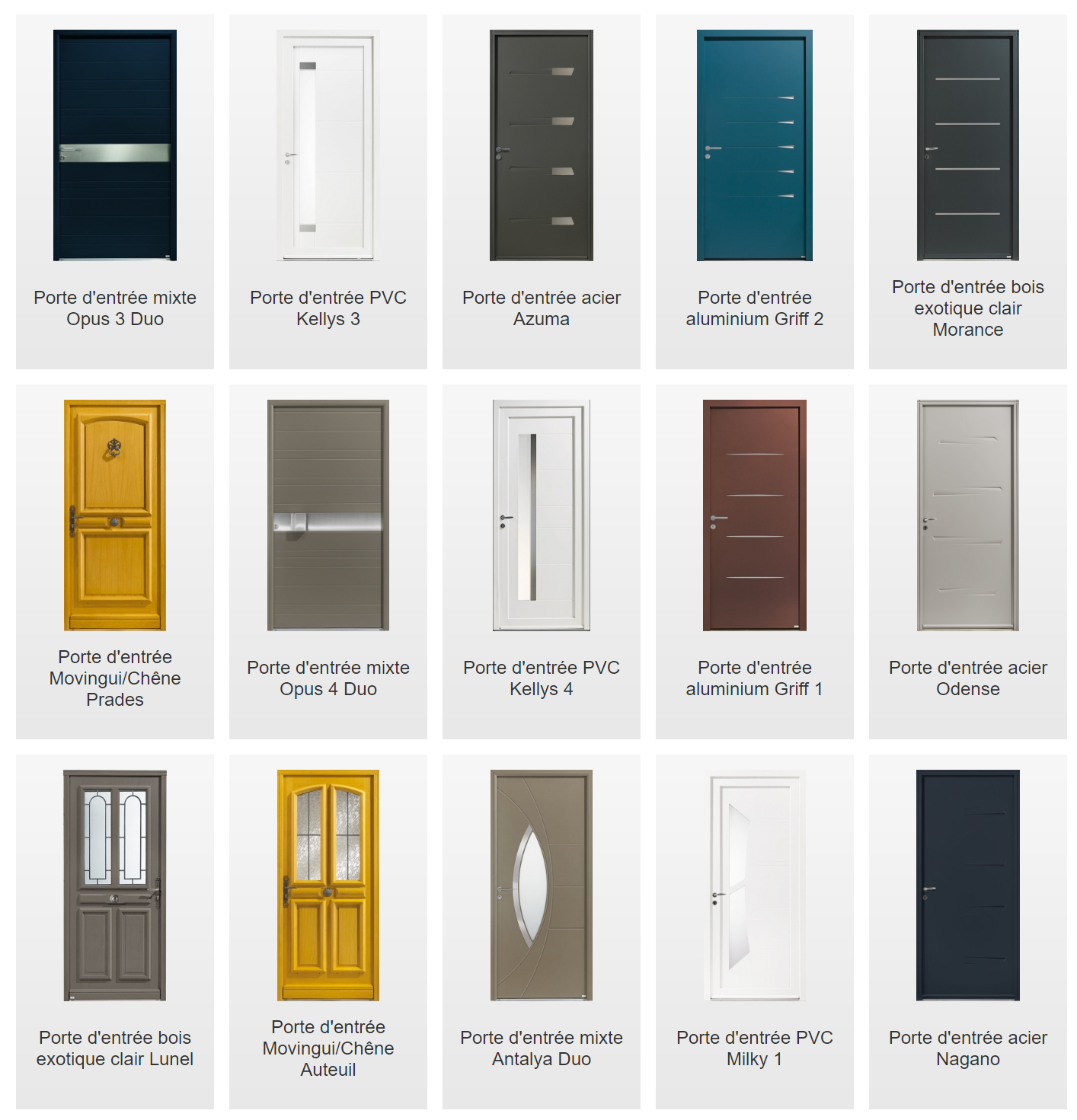 Voici des exemples de portes d'entrée que nous vous proposons selon nos réalisations.